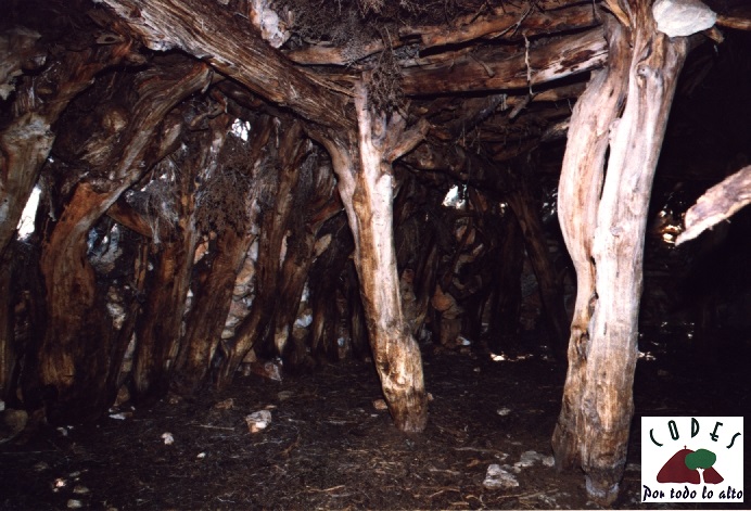 Construido de la piedra retirada de los sembrados, troncos de sábina sin cortar y con una cubierta de ramaje.